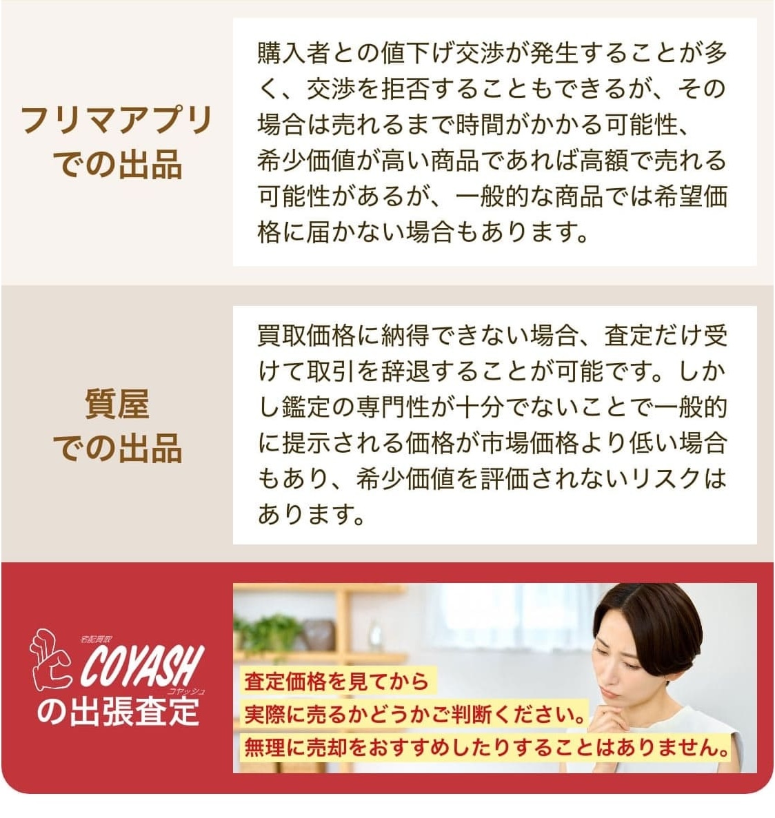 しかしコヤッシュでは、自社の鑑定力を生かし、古物鑑定士資格を発行するスクールも運営しています。大切なお品物の正しい価値を知りたい方は、査定のプロを率いるコヤッシュへまずはご相談ください。