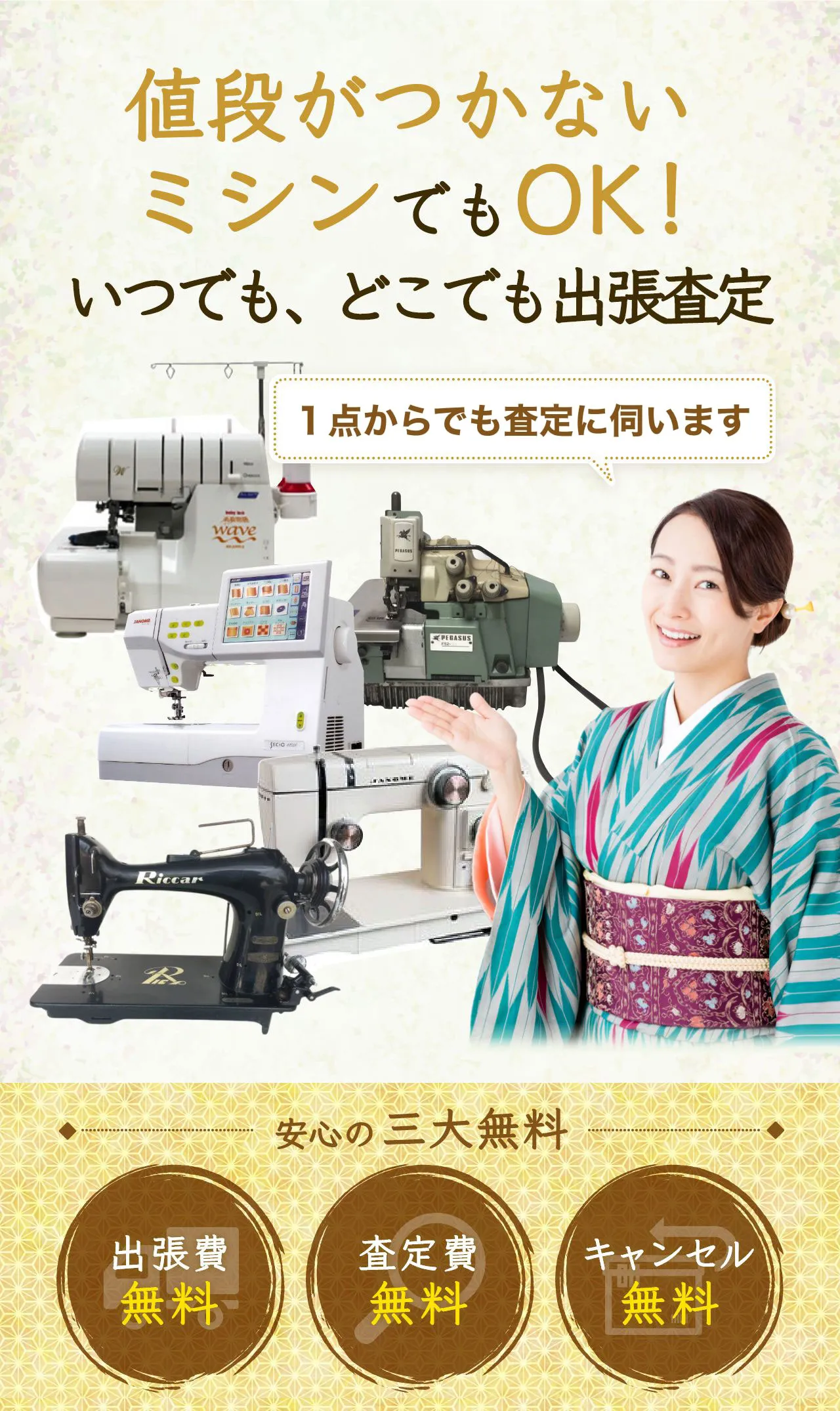 安心の三大無料 出張費無料 査定費無料 キャンセル無料